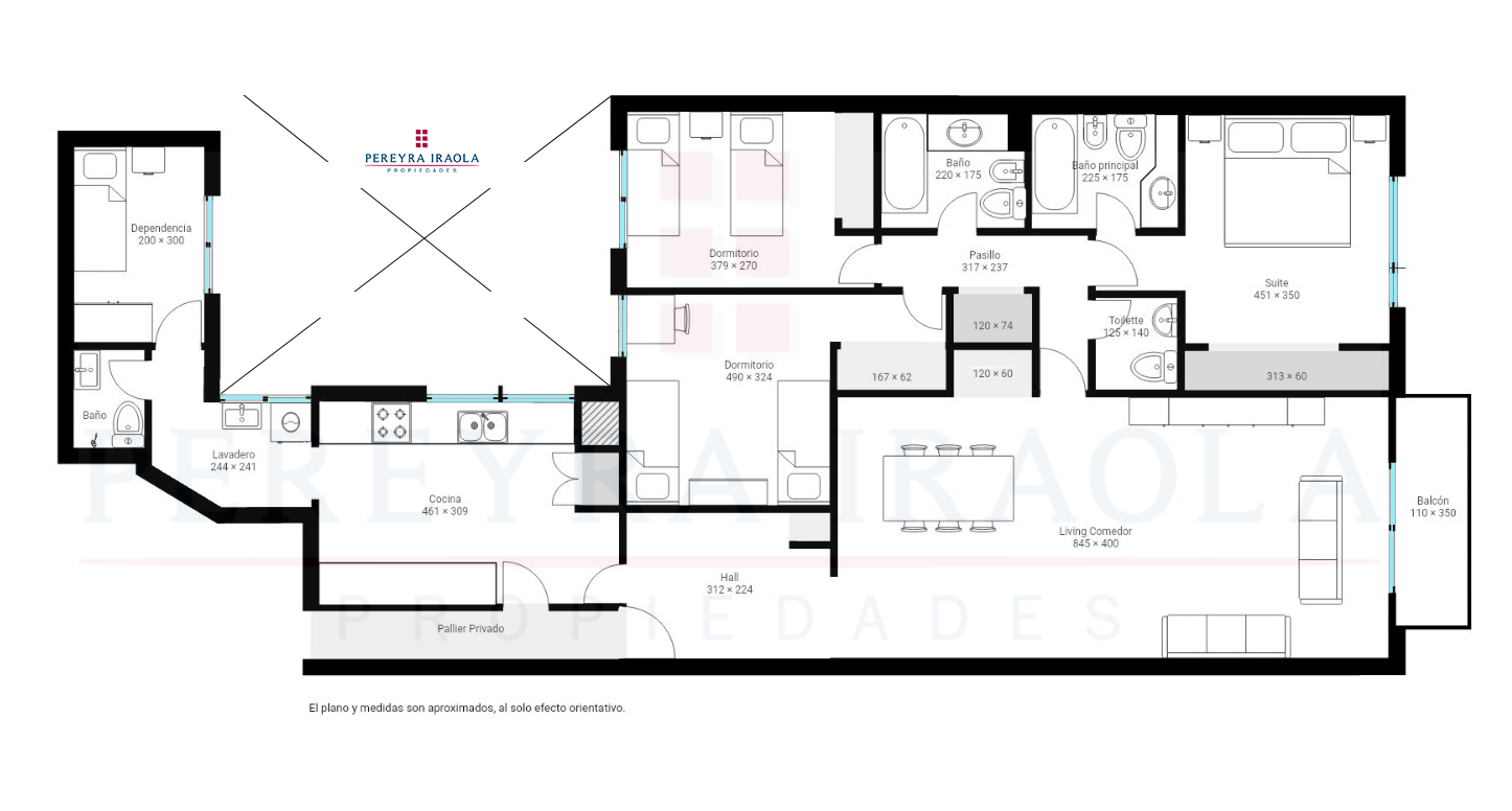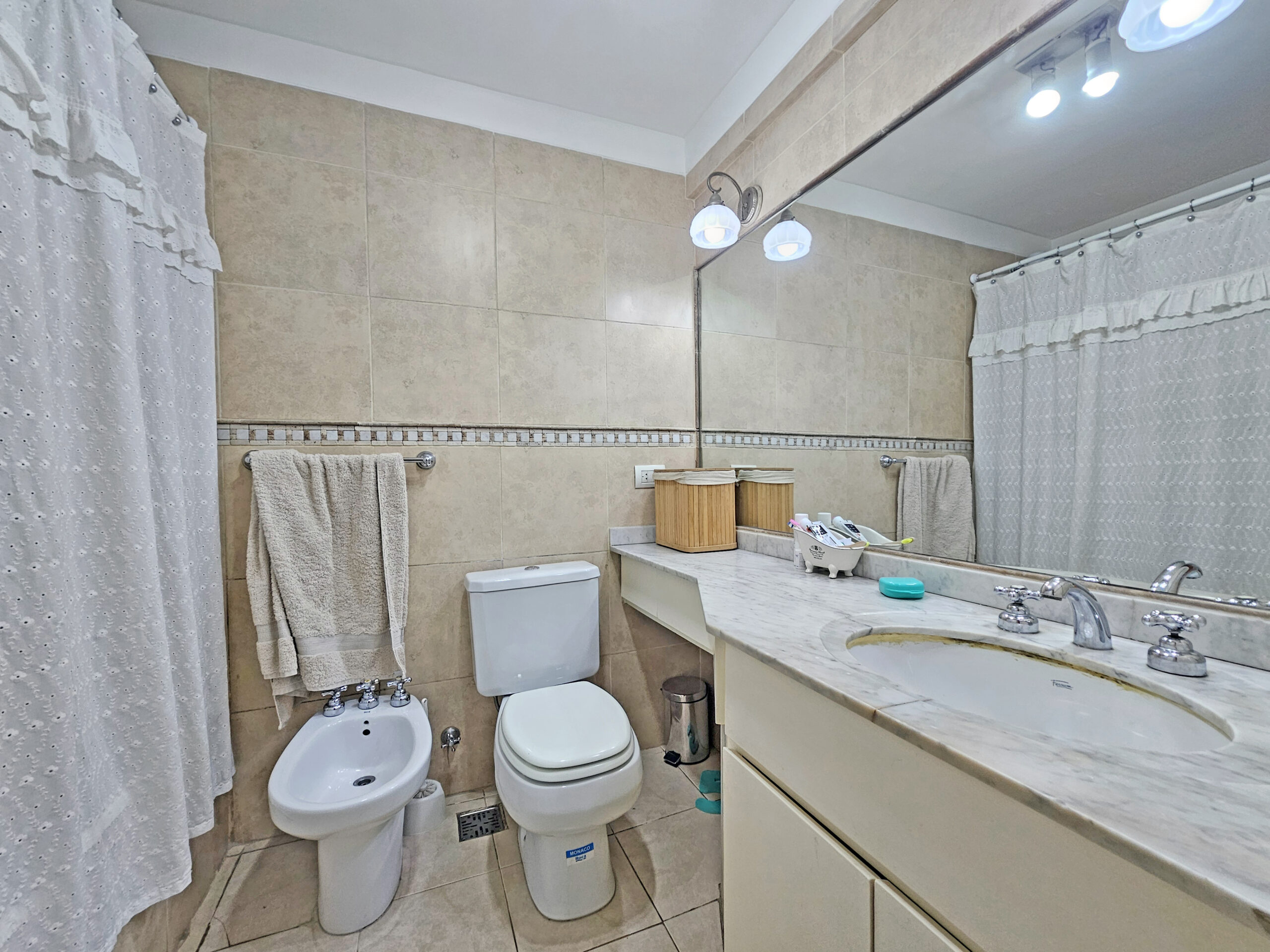 Ingresando por palier privado, se accede a la recepción con living-comedor, a un balcón al frente. Toilette de recepción. El dormitorio principal es en suite y también da al frente, mientras que los otros dos dormitorios comparten un segundo baño completo.